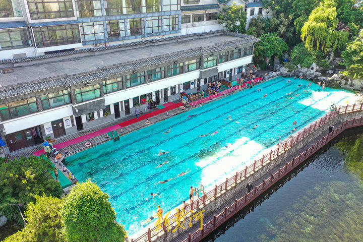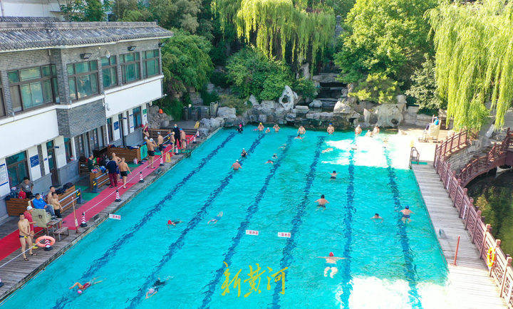 5月15日早上8点,在济南泉水浴场,池水清澈见底,刚恢复对外开放的浴场十分热闹,近百位游泳爱好者迫不及待跳入池子纵享清凉。