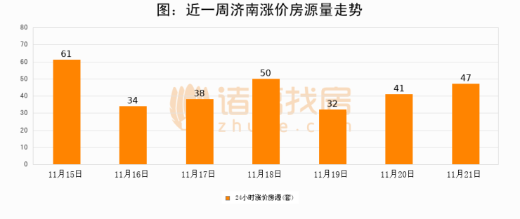 根据诸葛找房数据显示,济南24小时涨价房源量为47套,较11月20日增加6套,环比上涨14.6%。与此同时,涨价房源占比小幅扩大,业主信心有所提升。
