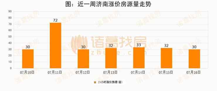 根据诸葛找房数据显示,济南24小时涨价房源量为30套,较07月15日减少2套,环比下降6.2%。与此同时,涨价房源占比小幅回落,对于购房者来说是一个入市窗口期,购房者可抓住时机入市。