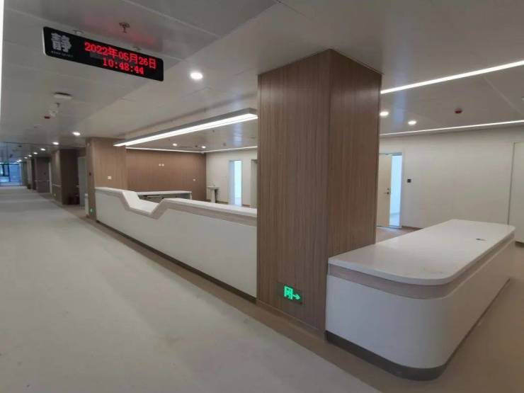 走进医院内部可以看到工人们都在紧张忙碌当中,基础装修基本完成,医院格局已初步成形。预计一期工程6月将完成竣工验收。