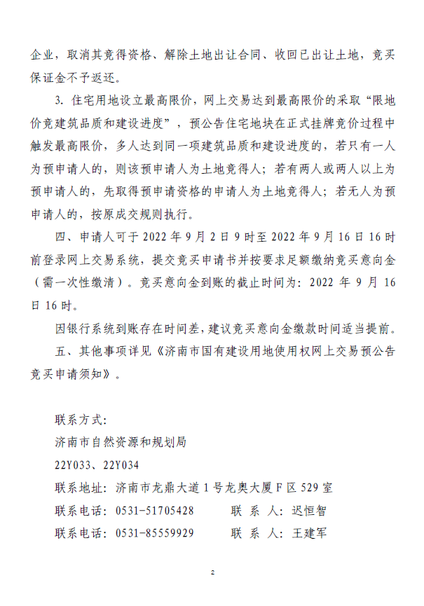 济南市国有建设用地使用权网上出让预公告(济自然规划预告字〔2022〕2号)
