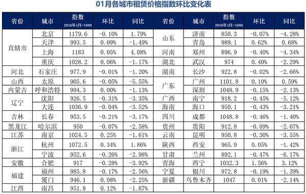 中国城市住房租赁价格指数,通过定期监测全国重点城市租赁的相关成交数据和市场调研数据,采用类似房屋重复交易法,计算35个城市月度价格变动趋势,在此基础上形成租赁价格指数。