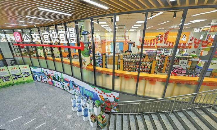 场站内设“公交|宜快宜慢”便利店,并充分融合了“公交+”的元素设计理念,除了内置货架摆放常规便利店商品外,还设有“巴士咖啡”“公交文创展区”等极具公交文化特色的区域。