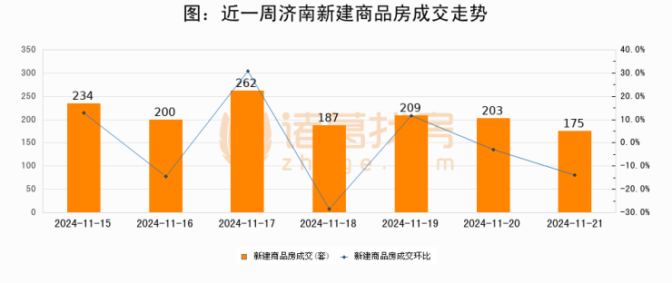【济南成交日报】11月21日新房成交175套;涨价房源50套