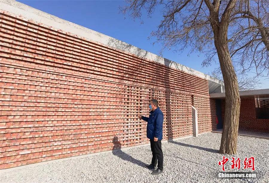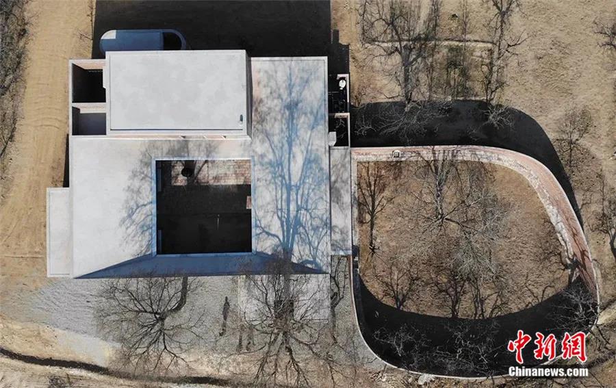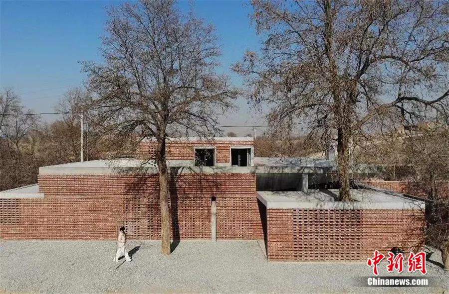 23日,中新社、中新网记者走进冬日里的水泉镇牙沟水村,草木凋零、寒风凛冽,尽显大西北的苍凉,已蹿红网络的“百万改造房”大门紧闭,门前的两棵槐树粗壮挺拔,当地讲究“前槐后柳,越过越有”的传统习俗,仅从外观来看,房屋设计独特,且贴近大自然。