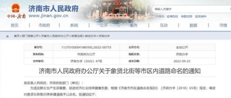 日前,市政府办公厅下发通知,根据《济南市市区道路命名规则》规定,确定对象贤北街等20条新建道路予以命名。