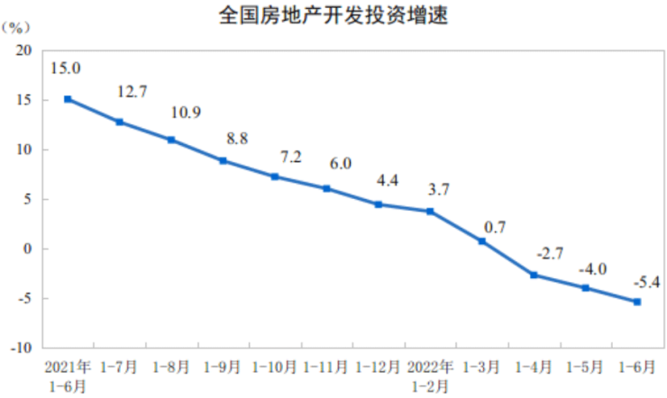 具体来看,根据国家统计局公布的数据,1-6月份全国房地产开发投资68314亿元,同比下降5.4%;其中,住宅投资51804亿元,下降4.5%。