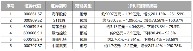 除浦东金桥外,绿地控股、海南机场和中国武夷预计上半年净利润均超过1亿元,海印股份、ST数源或超亿元。