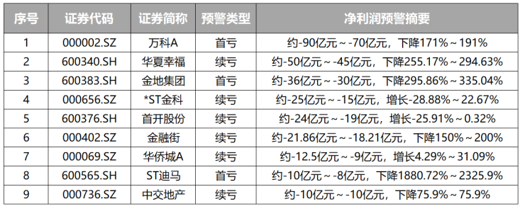 9家房企预亏超10亿元