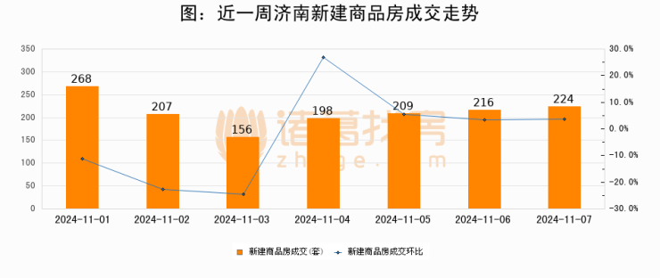 【济南成交日报】11月07日新房成交224套;涨价房源29套