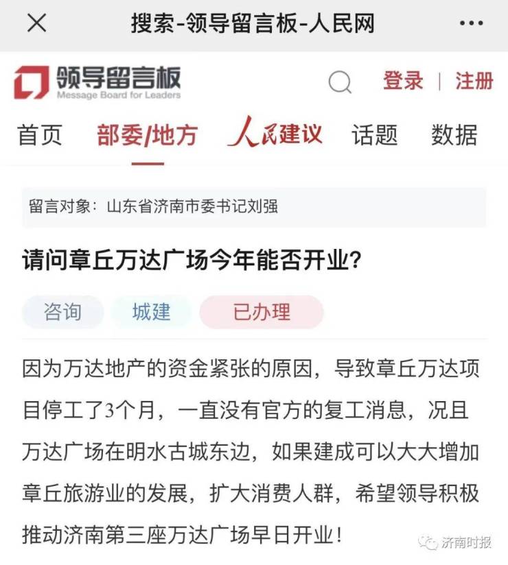 问题发生后,区政府立即成立专项工作组,组织专业机构盘点章丘万达项目的剩余货值情况。同时,专项工作组从5月份开始与万达、中建二局组织多次洽谈,目前就复工一事,已形成具体方案,并在积极推进,预计本月将会有最终节点信息。