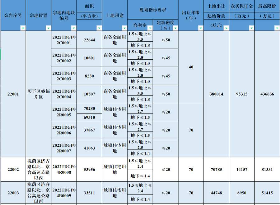此外,槐荫区济齐路南北两侧供应三宗住宅用地,面积共计约174.96亩;天桥区供应2宗组团地块,其中,住宅用地面积约159.3亩,商业用地面积约6亩。