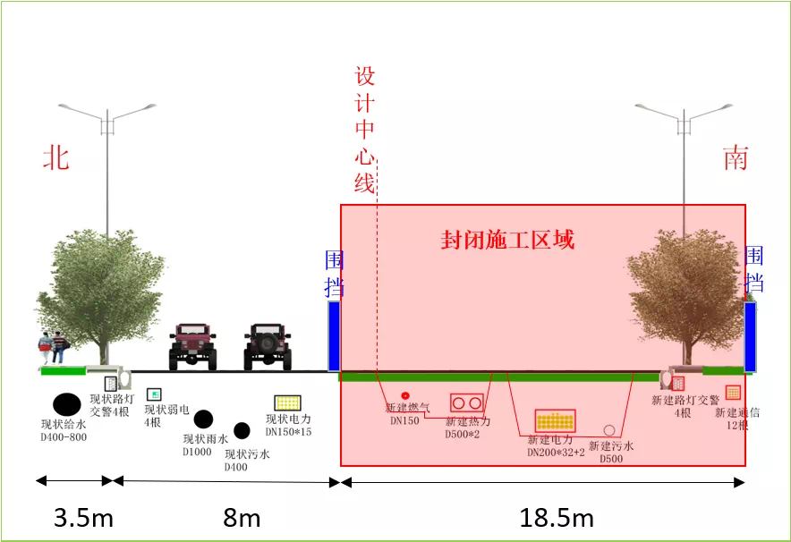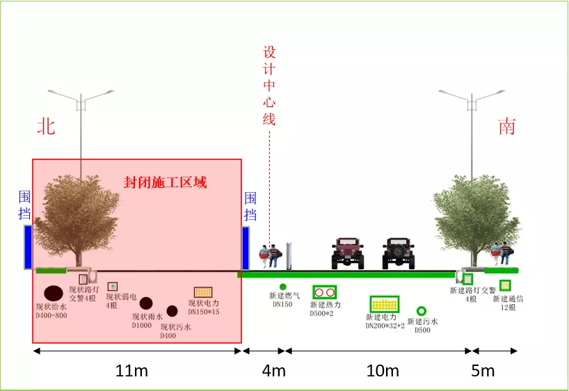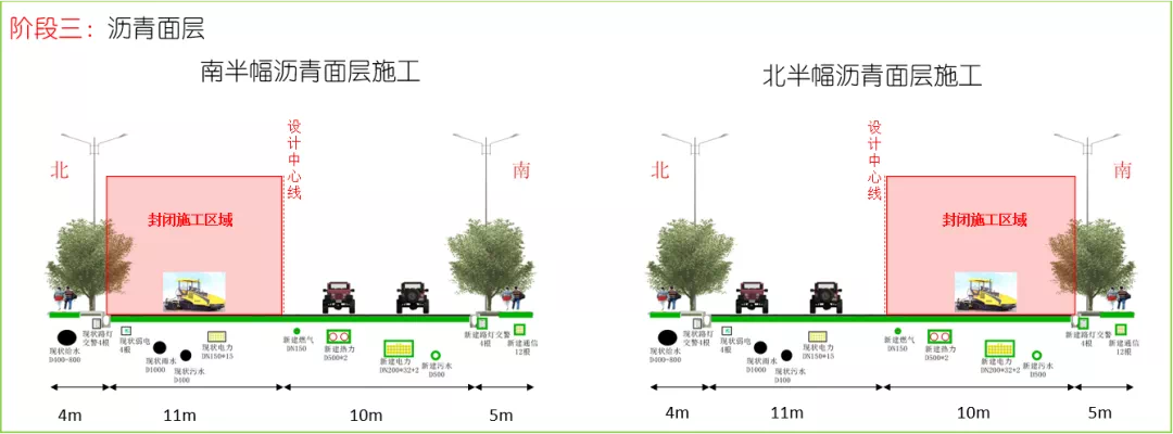 第二阶段:10月17日至12月16日进行现状路管线及路面改造施工,交通导行至新建南半幅通行;