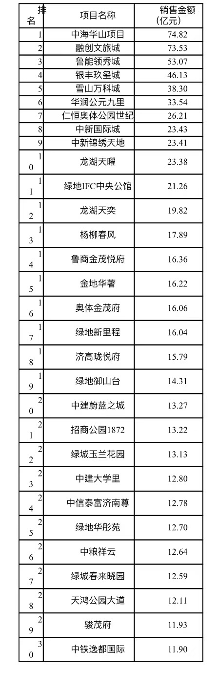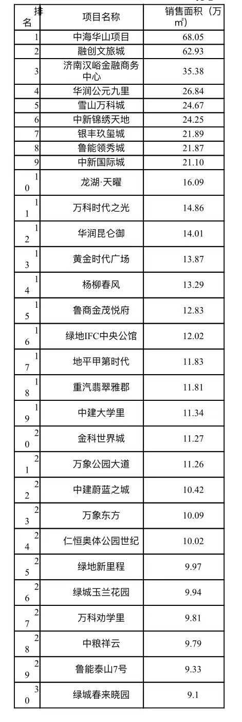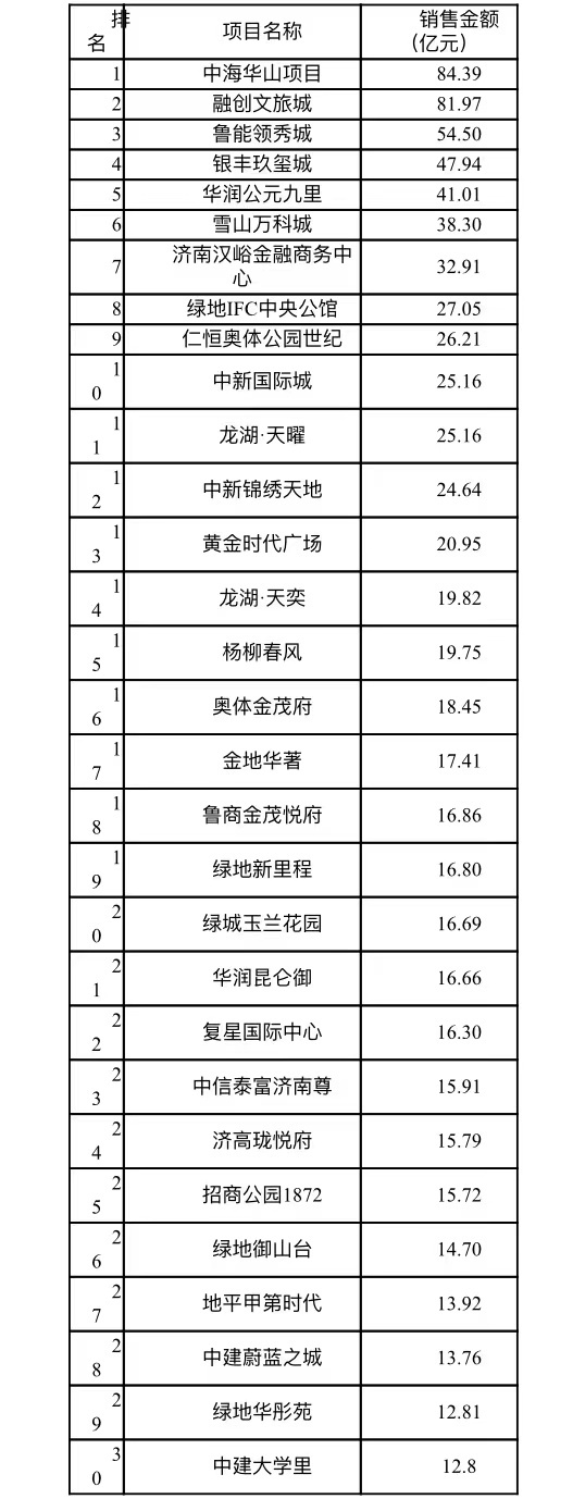 2021年济南房地产市场排行榜