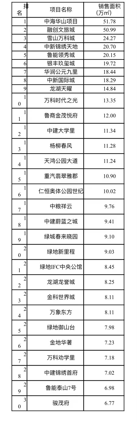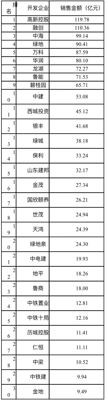 2022年1月20日,济南市房地产业协会发布2021年济南房地产市场运行情况及销售排行榜