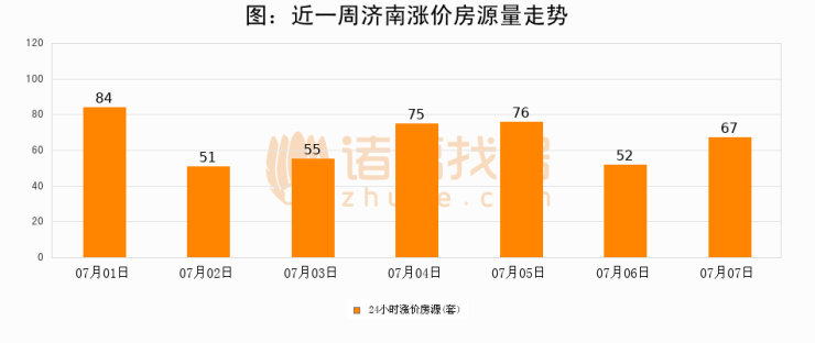 根据诸葛找房数据显示,济南24小时涨价房源量为67套,较07月06日增加15套,环比上涨28.8%。与此同时,涨价房源占比小幅扩大,业主信心有所提升。