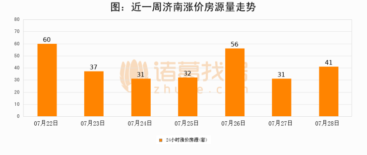 根据诸葛找房数据显示,济南24小时涨价房源量为41套,较07月27日增加10套,环比上涨32.3%。与此同时,涨价房源占比小幅扩大,业主信心有所提升。