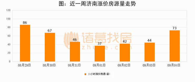 根据诸葛找房数据显示,济南24小时涨价房源量为73套,较09月03日增加29套,环比上涨65.9%。与此同时,涨价房源占比小幅扩大,业主信心有所提升。