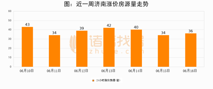 根据诸葛找房数据显示,济南24小时涨价房源量为36套,较06月15日增加2套,环比上涨5.9%。与此同时,涨价房源占比小幅扩大,业主信心有所提升。