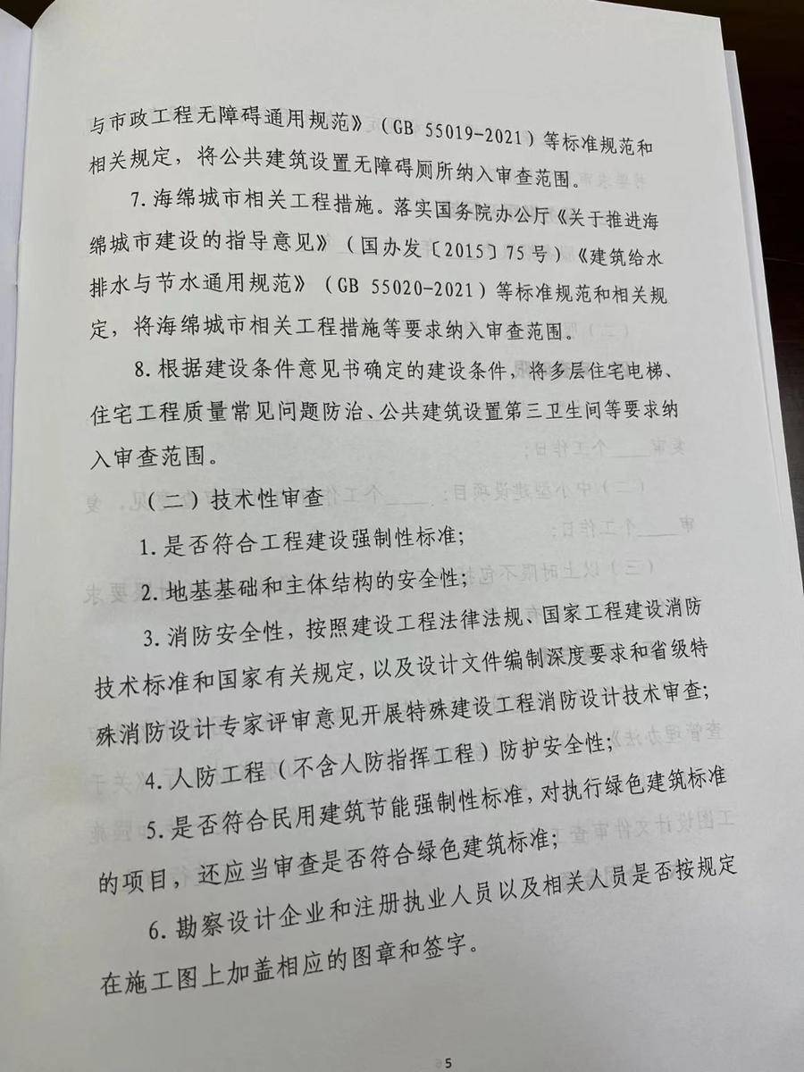 此外,政府投资或国有资金投资建筑工程全面采用装配式建筑,学校、医院等公共建筑原则上采用装配式钢结构设计。同时,按照国家改善民生、维护公共利益等政策要求,对落实新建居住区配建公共健身设施、居住小区充电基础设施、超高层建筑建设管理、海绵城市建设、多层住宅电梯,住宅工程质量常见问题防治、公共建筑配建第三卫生间等进行政策性审查。