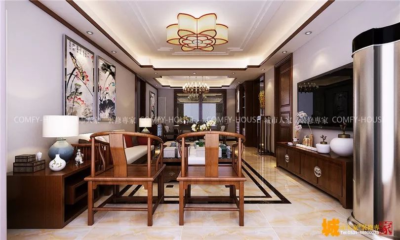 新中式风格在设计上继承唐、明、清时期家具理念的精华,在经典古典元素提炼的基础上加入了现代设计元素,摆脱原来复杂繁琐的设计功能上的缺陷,力求中式的简洁质朴。