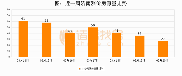根据诸葛找房数据显示,济南24小时涨价房源量为27套,较03月19日减少9套,环比下降25%。与此同时,涨价房源占比小幅回落,对于购房者来说是一个入市窗口期,购房者可抓住时机入市。