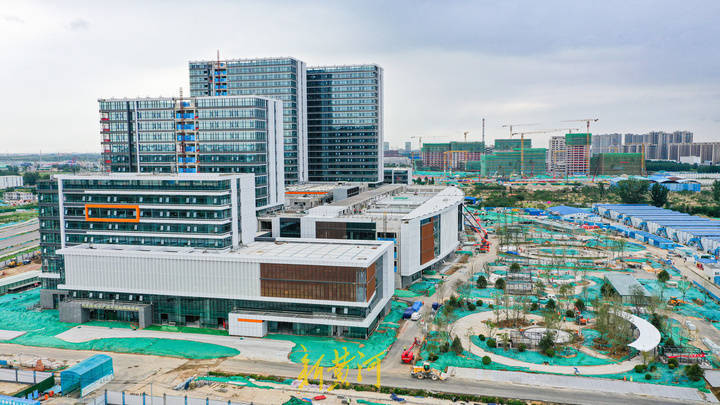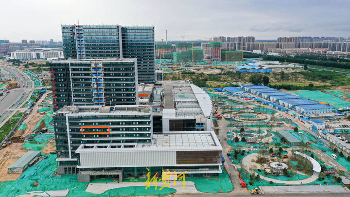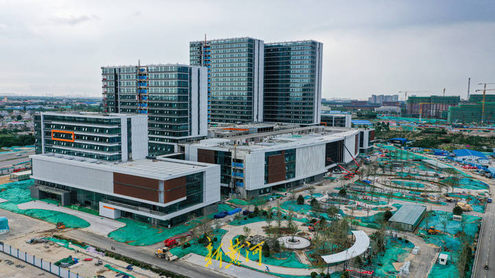 6月28日,在济南国际医学科学中心核心区,位于烟台路以北、医学大道以东,质子中心西邻的树兰(济南)国际医院项目建设现场,记者看到,多栋建筑外立面安装已经接近尾声,目前项目的外装已经完成95%以上,正处于室内装饰装修、机电安装、室外园林绿化阶段。