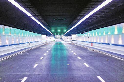 2021年10月23日,地下环路主路沥青路面铺设灯光安装基本完成。