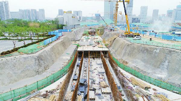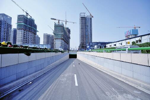 2017年5月8日,地下环路连接高层建筑地下车库的通道建成成形。