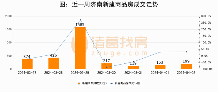 【济南成交日报】04月02日新房成交199套;涨价房源42套