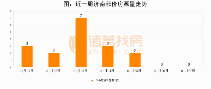 根据诸葛找房数据显示,济南24小时涨价房源量为0套,较01月26日持平。