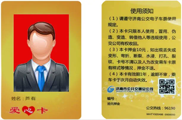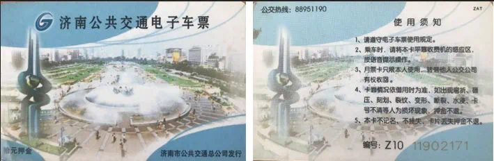 1.济南公交较早发行的M1型卡(票卡背面右下角没有标志的公交卡)