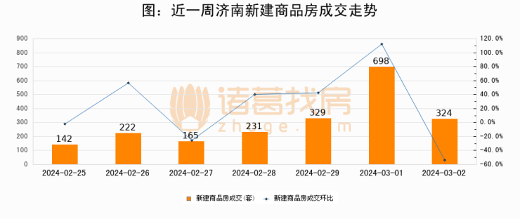 【济南成交日报】03月02日新房成交324套;涨价房源37套
