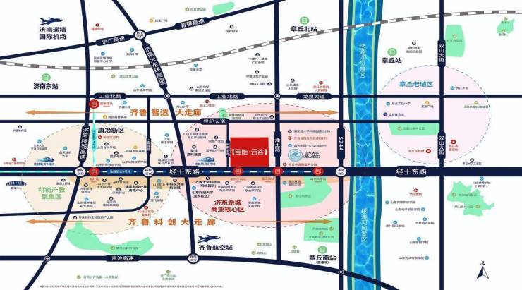 宝能·云谷立序济东核芯,扼守城市黄金要脉经十东路,齐鲁科创产业聚合地,背靠宝能城打造的70万方产城都会综合体,零距离坐揽鼎盛繁华的醇熟配套以及科创产业集群的加持;近享地铁8号线(距离项目约500米)、山大龙山校区等先进配套资源,以城市未来中心的当仁不让之势,宜居宜商的全新墅境,重新定义济南塔尖人士的尊崇象征。