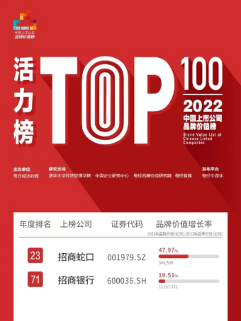 荣耀数字背后,是招商强大的品牌实力保障。作为具有百年历史的大国巨匠,招商局资产超11万亿,央企综合排名排名前列,同时,在《财富》世界500强榜单中,招商局和旗下招商银行双双入围,成为中国企业的世界代言者。