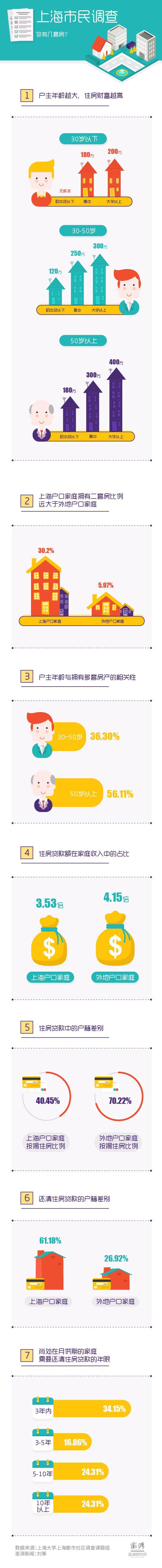 在所有借助银行贷款购买住房的家庭中,总贷款额约为全部家庭年总收入的3.64倍。上海户口家庭有住房银行贷款的家庭中,贷款额大概为家庭总收入的3.53倍,外地户口家庭银行住房贷款总额平均为家庭年总收入的4.15倍。