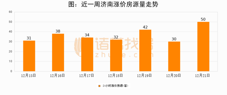 根据诸葛找房数据显示,济南24小时涨价房源量为50套,较12月20日增加20套,环比上涨66.7%。与此同时,涨价房源占比小幅扩大,业主信心有所提升。