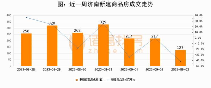 【济南成交日报】09月03日新房成交127套;涨价房源60套