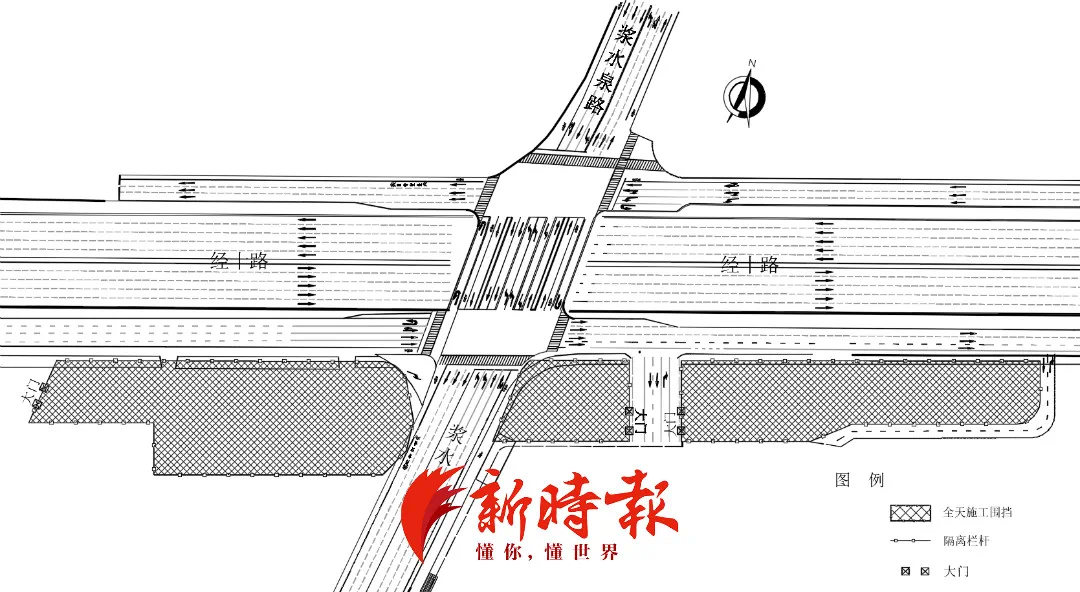 济南经十路这个路口部分车道施工,为期5年多,通行方式有变