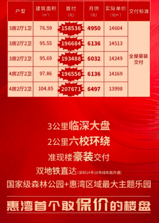 宋轩5月30日下午通过微信向记者表示,“这种保价项目在惠州并不多见,不过最近各项目营销手段倒是挺多的,比较常见的就是打折,比如灿邦观邸较低9折,较高首付可以送2成,首付13万元起;冠华城桂香园打9折,可以送1成首付,借1成首付,较低首付约12万元起。”