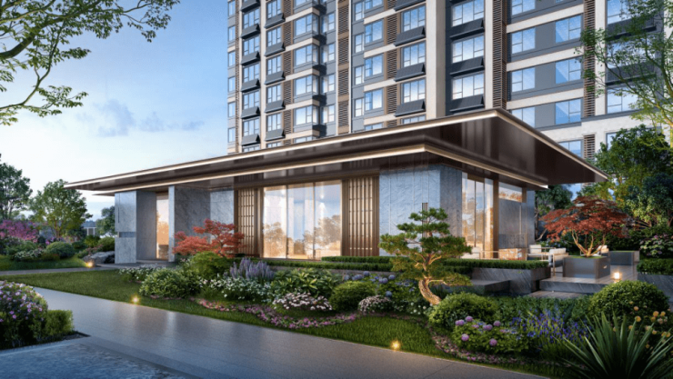龙湖·九里熙上采用现代典雅的设计风格,外立面采用三段式的设计手法,屋顶设计飘檐,体现建筑的轻盈感,同时寓意业主事业腾飞。