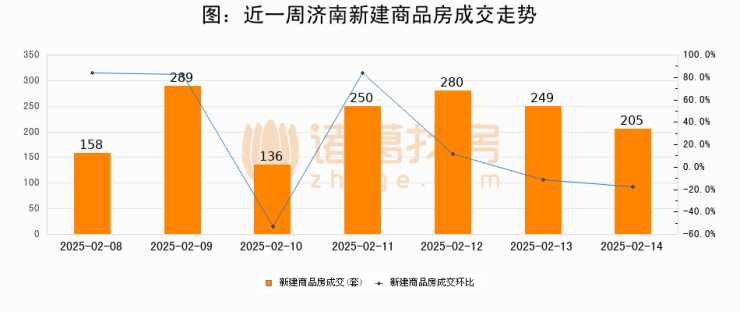 【济南成交日报】02月14日新房成交205套;涨价房源25套