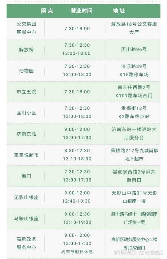 济南公交发售网点