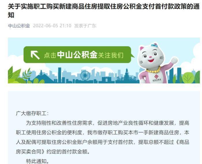5日,中山市住房公积金管理中心在官方公众号发布关于实施职工购买新建商品住房提取住房公积金支付首付款政策的通知