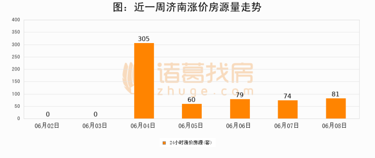 根据诸葛找房数据显示,济南24小时涨价房源量为81套,较06月07日增加7套,环比上涨9.5%。与此同时,涨价房源占比小幅扩大,业主信心有所提升。