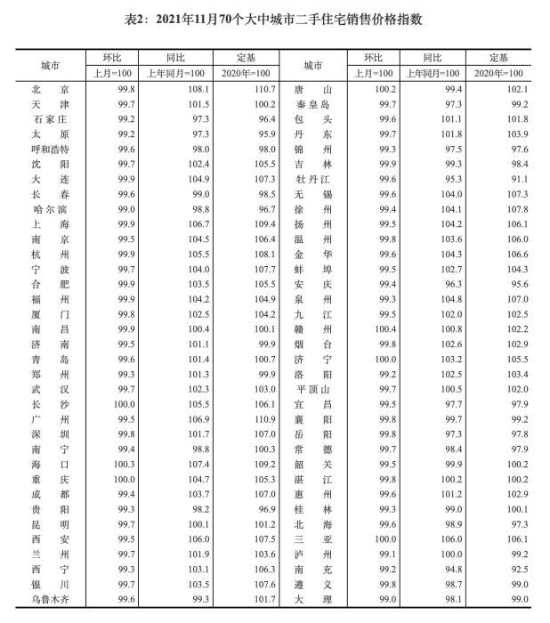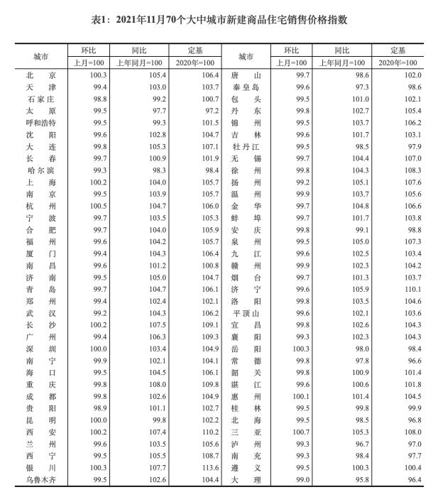 12月15日,国家统计局公布的数据显示,11月,70个大中城市商品住宅销售价格环比延续下降态势,同比涨幅持续回落。