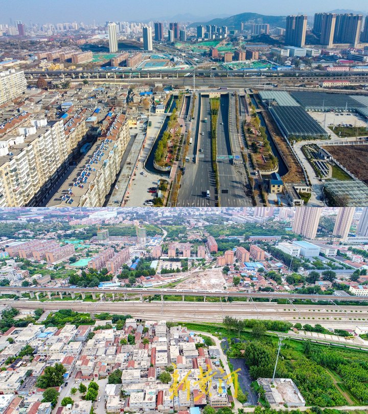 在市区“北大门”黄河大桥南首的蒋家庄,旧村紧邻黄河大坝原来的大片平房上方覆盖着红色和蓝色顶棚,如今建设成为高层安置房;工业南路的丁家庄紧邻中央商务区,整体拆迁后异地迁址建设安置房,建成后已经实现搬迁入住,距离中央商务区核心区只有1公里;二环西路东侧的韩家庄部分区域搬迁后,原址修建成城市东西主干道——刘长山路;青岛路西首的油牌赵庄村搬迁后,原址建设了山东排名前列医科大学济南校区;中央商务区西侧的姚家村香港街,两侧村民平房拆除后,建起了高层住宅,也成为通往CBD的主干道之一;紧邻宜家的张庄村原来是装饰材料市场和大片的民居,如今安置房基本建成;紧邻腊山立交桥的刘庄村拆迁后,原址建起了安置房,如今也已实现回迁入住。