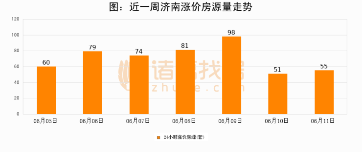 根据诸葛找房数据显示,济南24小时涨价房源量为55套,较06月10日增加4套,环比上涨7.8%。与此同时,涨价房源占比小幅扩大,业主信心有所提升。