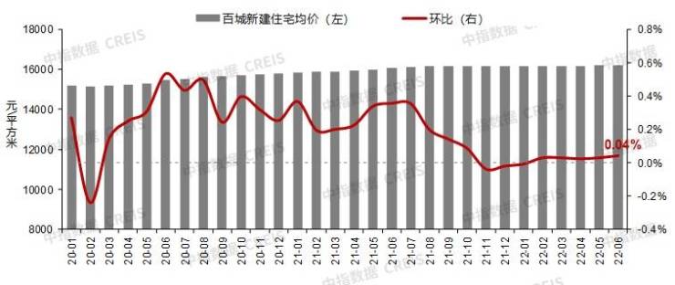 图:2020年1月至2022年6月百城新建住宅均价及环比变化