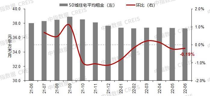 图:2021年6月至2022年6月50城住宅平均租金及环比变化